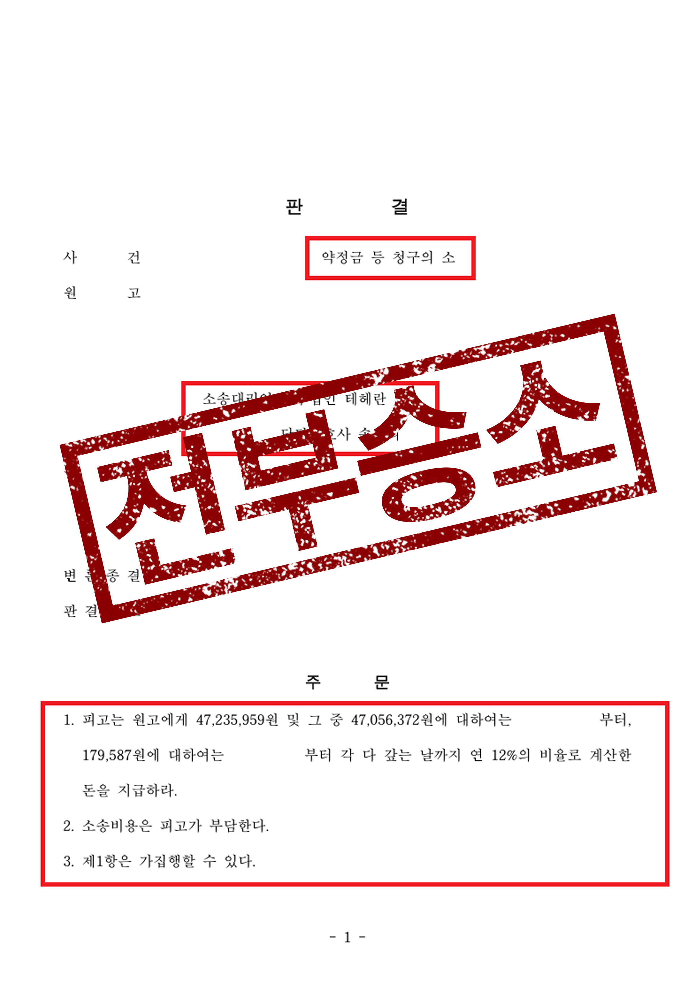 결국 재판부는 의뢰인의 손을 들어, 원고 전부 승소 판결을 내려주었습니다.
