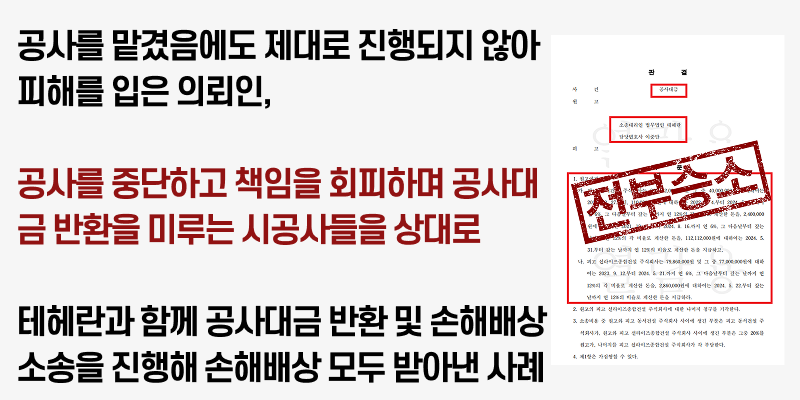 공사를 제대로 진행하지 않은 시공사들을 상대로 공사대금 반환 및 손해배상 청구 소송 승소한 사례
