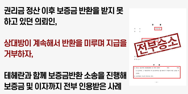 테헤란과 함께 보증금반환 소송을 진행해 보증금 4,000만 원 및 지연이자까지 전부 인용받은 사례를 들어보세요.